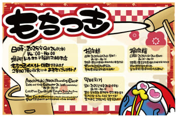 Experience a rice cake pounding event. Participants will receive a free rice cake!