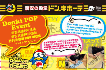 唐吉訶德店裡到處都是各式各樣的POP!那些都是唐吉訶德引以為傲的POP創作者們,一張一張親手繪製出來的!這樣的POP創作者,這次將以唐吉訶德POP風格為你親手寫下你的名字!後消費滿5,000日圓且免稅即可參加。